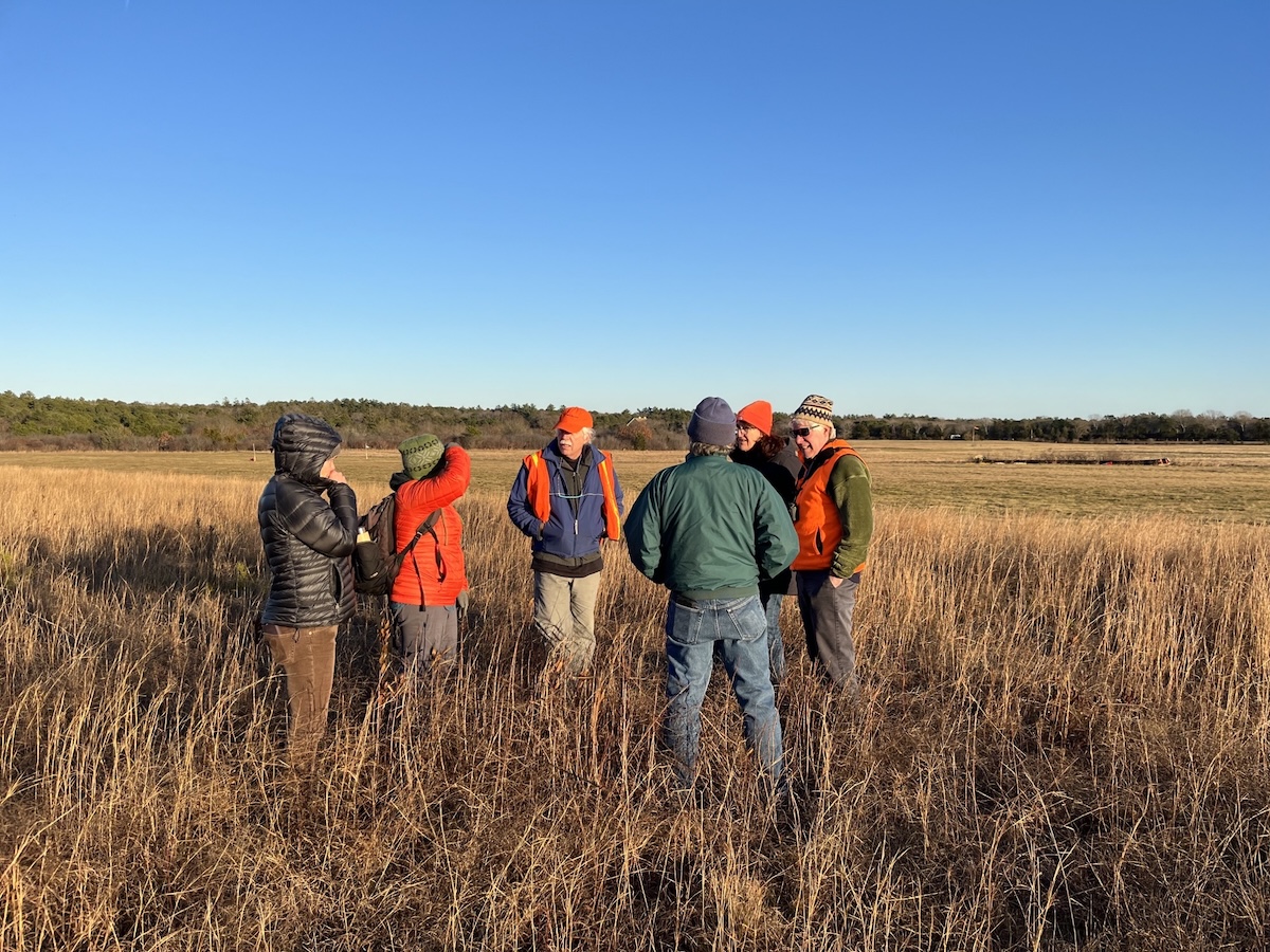 Members of the Sandplain Grasslands Network discuss flora and fauna during a site visit to a high quality sandplain grassland on Cape Cod.